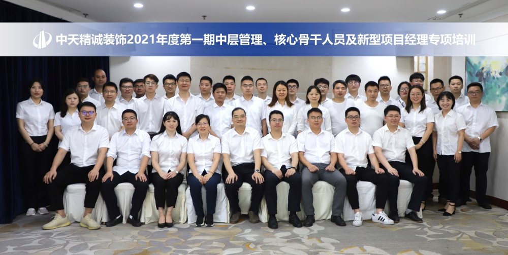 为加快公司人才梯队建设,加速新型项目经理队伍储备,提升中层管理、核心骨干及新型项目经理管理水平,中天精诚装饰于5月15日-16日举办2021年度第一期中层管理、核心骨干及新型项目经理专项培训,共计46人参加。