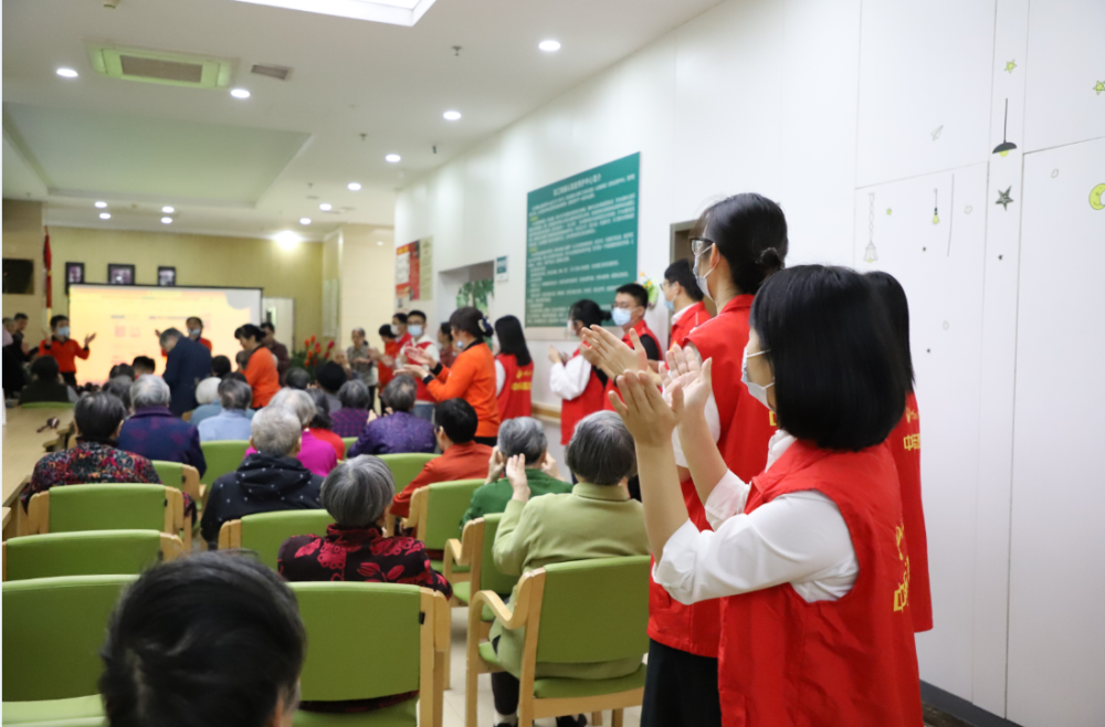 趣味运动会后,志愿者们为敬老院的老人们送上投影幕布,和老人一起跳健身操。现场气氛热烈,爱跳舞的沈爷爷、爱唱歌的金奶奶、和蔼可亲的王教授、端庄优雅的严奶奶……活动中,这些老人开心得像个孩子,让志愿者们暖心又舒心。陪伴的时光总是短暂,一晃一下午的时间就过去了,志愿者们与老人依依不舍道别并相约下次再来看望他们。