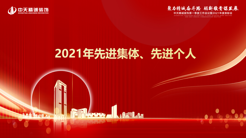 在表彰环节,中天精诚装饰对2021年度先进集体、先进个人及工程管理大检查、三方检、创优等获奖单位及个人进行表彰,以激励全体员工在新的一年学习先进、奋发实干。