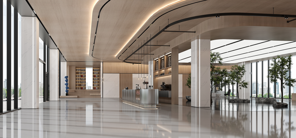 浙江华云电力实业集团有限公司华云科创中心项目精装修工程位于杭州市钱塘区围垦街以南,幸福北路以东,项目建设内容为新建工业厂房及附属办公建筑、配套设施,项目总用地面积5.92万平方米,总建筑面积21.1万平方米。该项目整体设计以简约为主基调,配以木色使空间具有层次感,简洁又时尚,体现以人为本的基本理念,营造休闲舒适、愉悦放松、贴近自然、亲和宜人的空间体验。